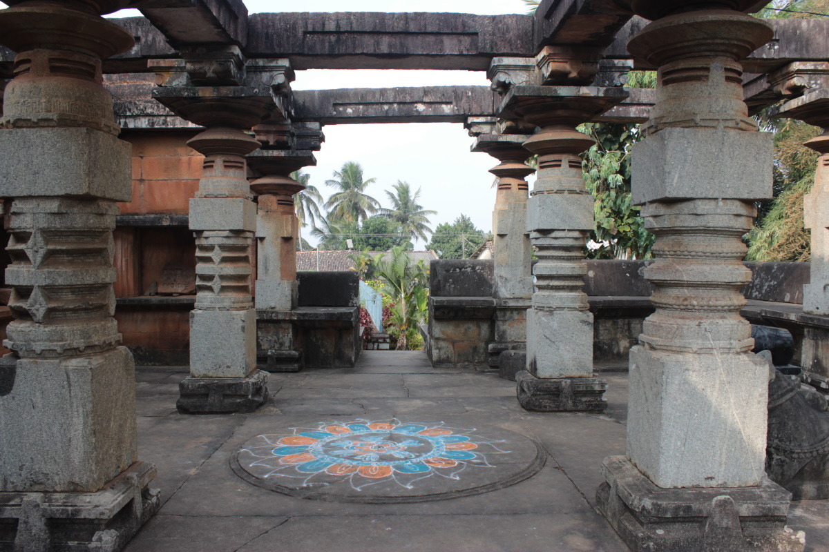 The Sabhamantapa as seen from a corner. There are four niches which are made to place idols of Ganesha, Nagadeva, Saptamatrika, and so on. The chief idol of this temple is a Shivalinga. As you see the temple is kept clean, daily pooje is carried out by local people.