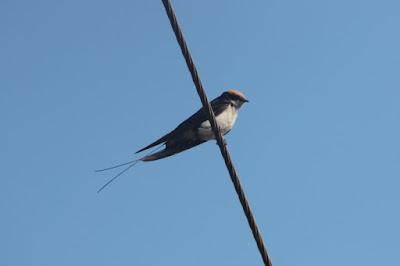 Besides the historical site, the other two interesting things about this place were the electricity poles and cables. The partly submerged poles created an unusual sight... their blurred reflections in the almost still surface of water had an artistic touch. Coming to the electricity poles, they were like railway platforms on a long weekend... hundreds of birds perched on the cables as though that's the only place they had. These flocks consisted of at least two or three kinds of more or less same size. I could recognize sparrows, then a bird with long tail feathers. The birds were here to feed on insects which are less active in the cool hours of morning. And kites hovered higher above preying upon these birds. A live natural food chain.